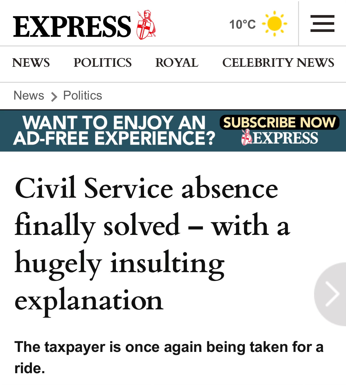 We’ll take the article Civil Service absence finally solved – with a hugely insulting explanation from the Express, and focus on the following paragraph:
